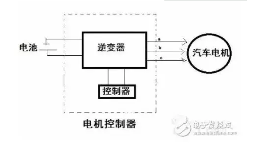 電動機在驅動汽車工作過程中,電動機控制器在促使電動機工作。電機控制器是由逆變器和控制器兩部分組成。其中逆變器接收電池輸送過來的直流電電能,逆變成三相交流電給汽車電機提供電源,其次控制器接受電機轉速等信號反饋到儀表,當發生制動或者加速行為時,控制器控制變頻器頻率的升降,從而達到加速或者減速的目的。